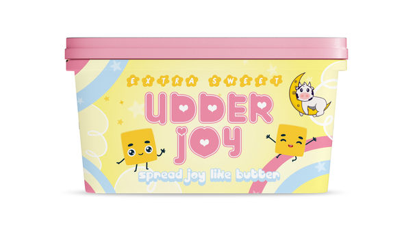 I have created a new brand of butter called Udder Joy. The packaging for this brand features a variety of styles to appeal to different demographics. This project was done purely for fun, with no specific rules or guidelines, except to learn new techniques and enjoy the process. It was educational and entertaining, and I even found myself laughing out loud. This experience has helped me to further develop my artistic abilities and my passion for research. I'm still churning out ideas, so stay tuned for updates!