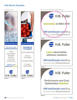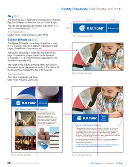 I have constructed many Brand Identity Standards. The largest was for HB Fuller, a global adhesive company. I augmented the palette, adding accent and secondary colors. I typed the positioning statement. I also created a user-friendly element. The "Beaker Silhouette” was a unifying shape that could be used on any collateral. To ensure ease of use, its proportions were based on the width of the page or web ad. This allowed a simple conversion from departments all over the world, in any measurement system.